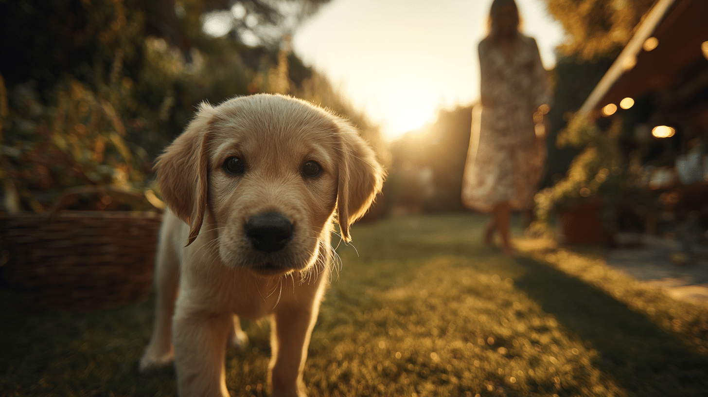 Der Welpe bleibt beim Halter